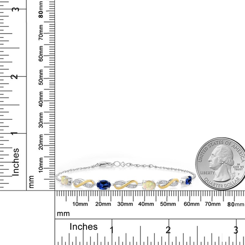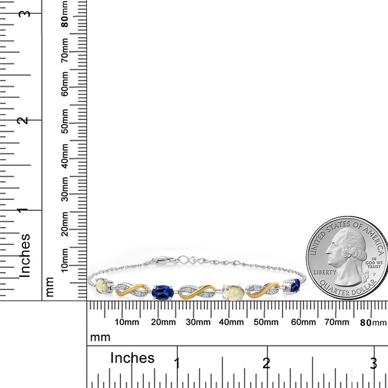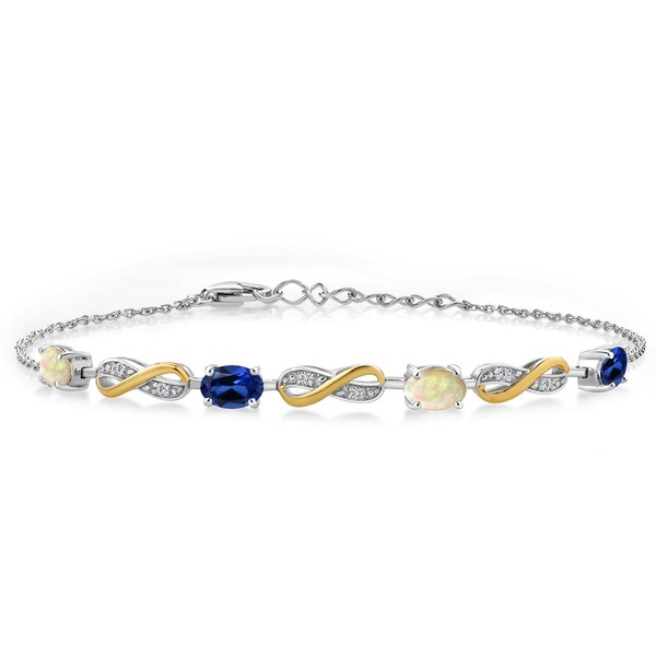 925 Silver and 10K Yellow Gold White Ethiopian Opal Created Sapphire and Lab Grown Diamond Infinity Tennis Bracelet For Women Mother's Mom Wife Her (1.89 Cttw, Fully Adjustable Up to 7.5 Inch)