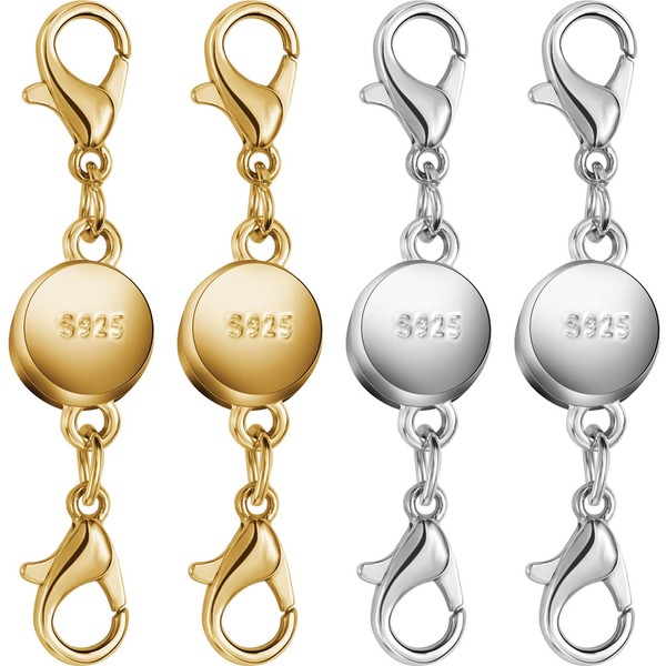 925 Silver and Gold Magnetic Necklace Clasps, Round Necklace Clasp Closures for Jewelry Making,Magnetic Necklace Clasps and Extenders,for Bracelet Necklace and Accessories (4pcs | Gold Silver)