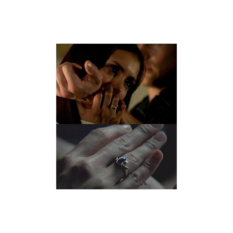925 Silver Plated Cubic Zirconia Blue Stone Vampire Diaries Elena's Daylight Women Band Ring,Size 6