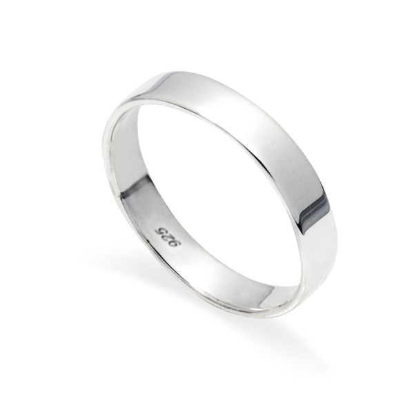 925 Solid Sterling Silver 4mm Flat Band Polished Ring In Sizes G-Z (M)