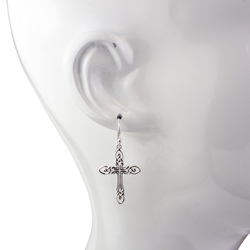 925 Solid Sterling Silver Filigree Cross Earrings for Women - Dangling Christian Allergy Free Jewelry