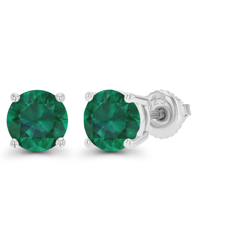 - Created-Emerald: This Sterling Silver Rhodium 6mm Round Created Emerald Stud Screwback Earrings features 2 gemstones with a total carat weight of 1.80 CTW.
