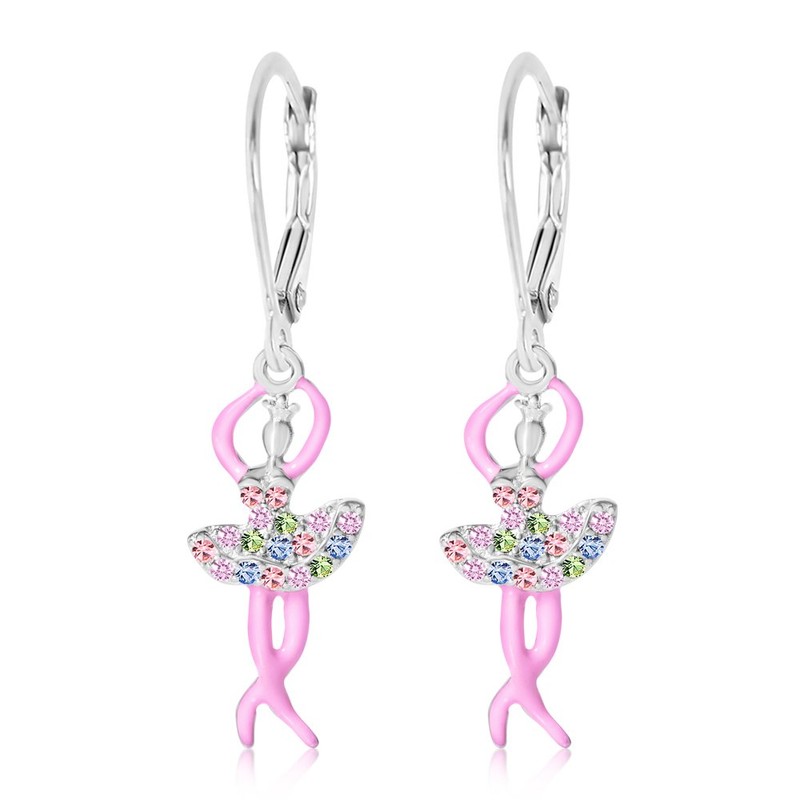 925 Sterling Silver Ballerina Leverback Hypoallergenic Enamel Earrings for Kids With Crystal Elements Safe For Girls Children Infants Toddlers Babies and Tween White Gold Toned