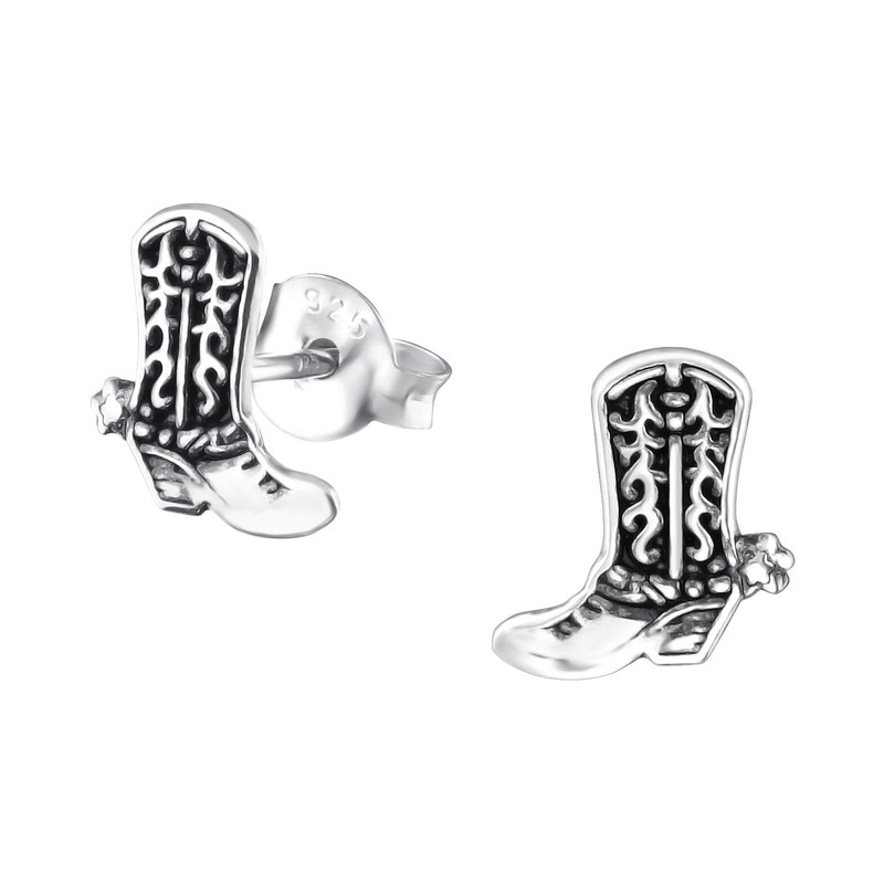 925 Sterling Silver Cowboy Boot Stud Earrings, Sold as a Pair