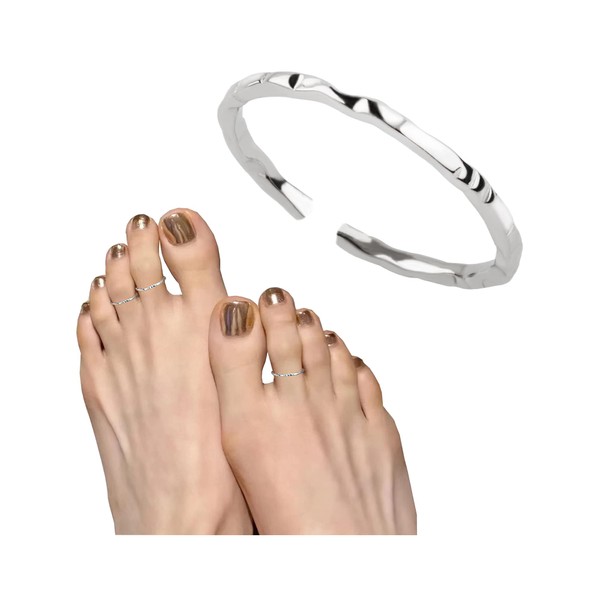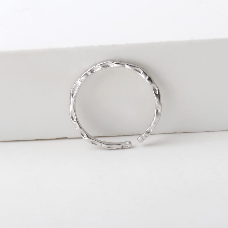 925 Sterling Silver Hammered Textured Thin Small Adjustable Open Toe Ring