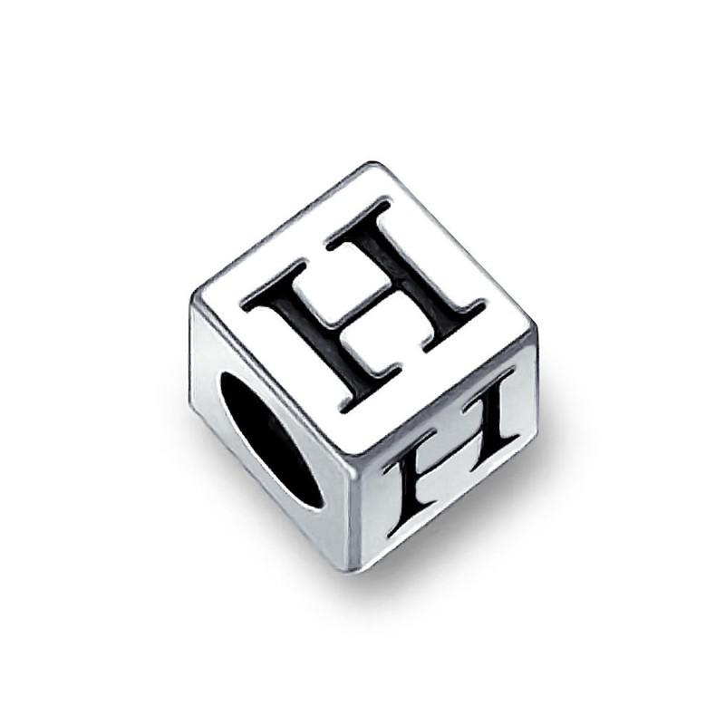 925 Sterling Silver Letter H Initial Square Block Bead Charm Alphabet Theme