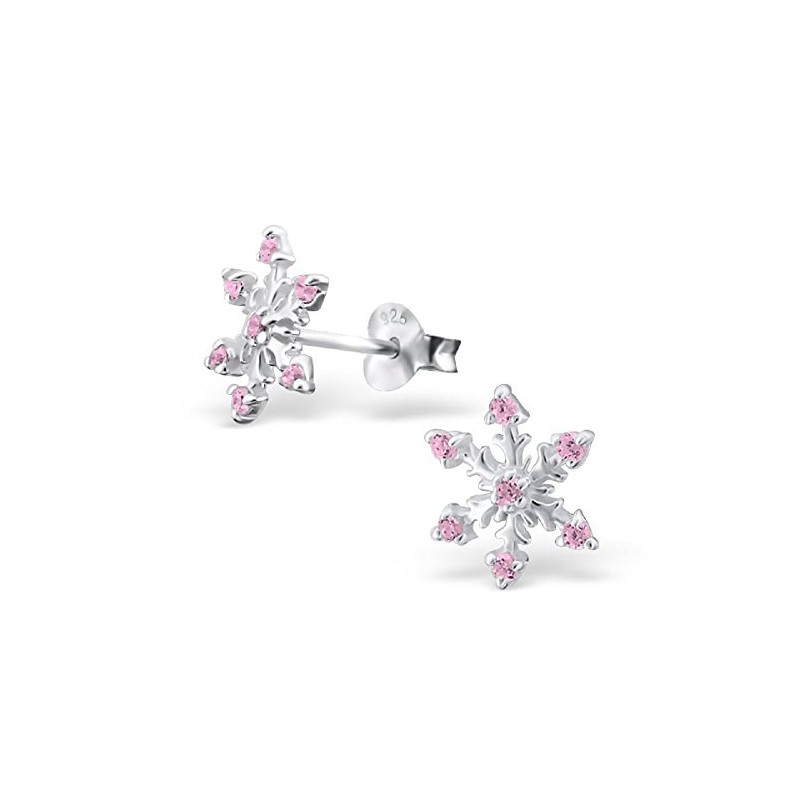 925 Sterling Silver Pink CZ Snowflake Christmas Stud Earrings 19095