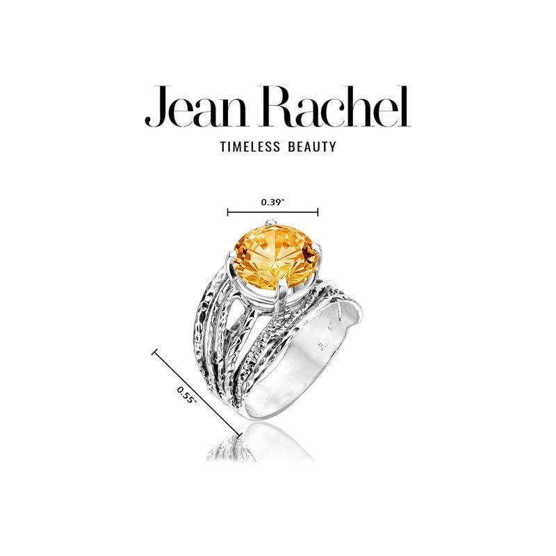 925 Sterling Silver Ring with Round Cubic Zirconia - Prong Vintage Design Statement Ring - Hypoallergenic, Nickel & Lead-free - Artisan Handcrafted Designer Collection - Made In Israel - Citrine