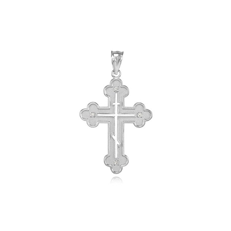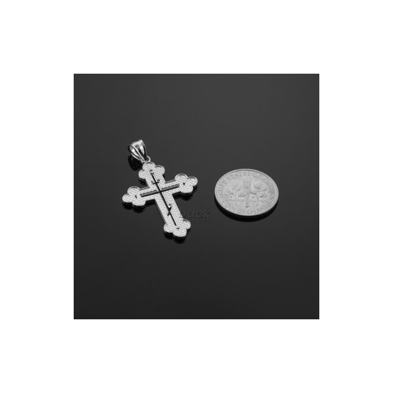 925 Sterling Silver Studded Charm Eastern Orthodox Cross Pendant