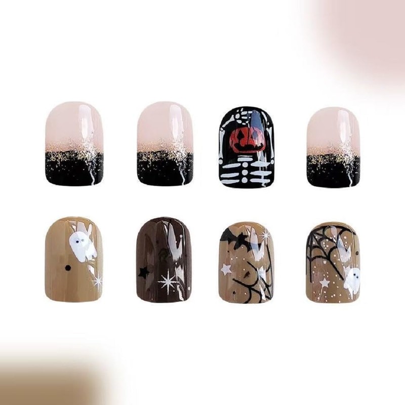 - Easy to Use: Spider web fake nails is simple and easy to use, after trimming and cleaning your nails, then choose a ghost false nails that is suitable for your own nail size, apply with glue, then press the cute false nails onto the jelly glue you will get the nails art you like