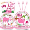 96 Pcs Sloth Animal Party Plates Napkins Tableware Set Sloth Birthday Party Supplies Disposable Dinnerware Pink Sloth Themed Decoration Favors for Baby Shower Birthday Party,24 Guests