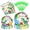 96 Pieces Dinosaur Birthday Party Supplies Set - Happy Birthday Dino Theme Disposable Dinnerware with Paper Plates, Napkins, Forks for Boys Kids Party Decorations and Celebration