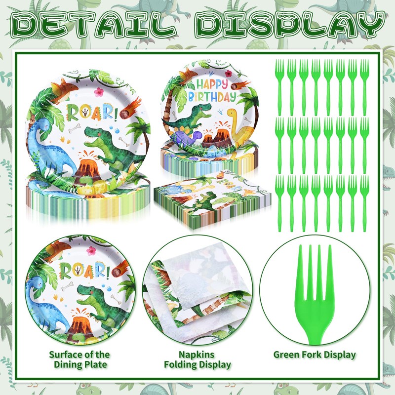 - Perfect for Dinosaur-Themed Parties - Whether you're hosting a dinosaur birthday party, jungle adventure, school event, or a prehistoric-themed celebration, this Dino party set is a must-have. The fun and vibrant design will delight kids and create unforgettable memories.