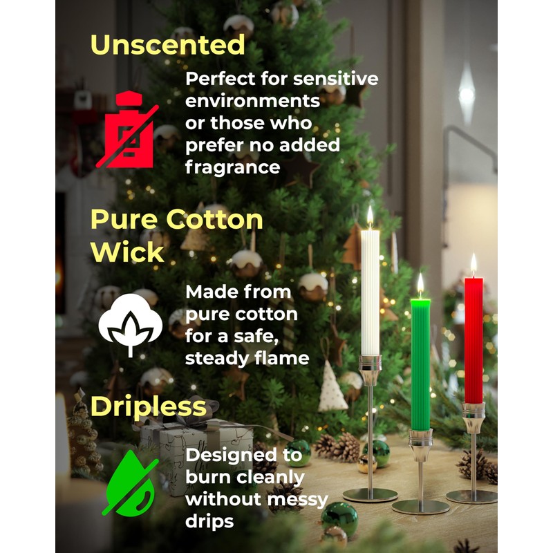- Perfect Holiday Glow: Each 8-inch candle burns cleanly for up to 14 hours, providing a warm, dripless glow for your Christmas dinners, parties, or quiet evenings.