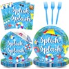 Chunnin 96Pcs Splish Splash Birthday Party Supplies Pool Party Paper Plates and Napkins Splish Splash Bash Party Tableware Set Serves 24 Guests Summer Beach Hawaiian Birthday Party Favors Decorations