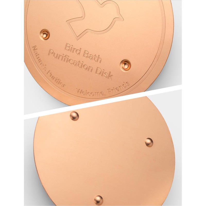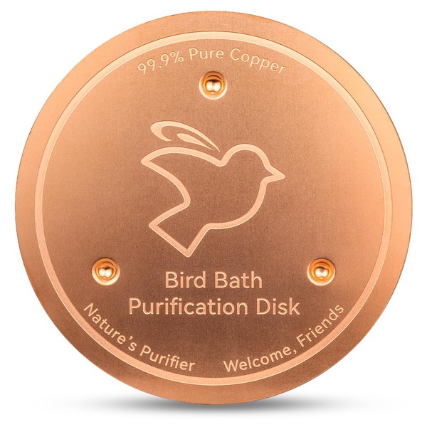 - Just as discerning gardeners opt for organic fertilizers to nurture their plants, passionate birdwatchers and nature purists will find the copper disk to be the perfect, chemical-free solution for their feathered friends. Crafted from pure copper, it harnesses the power of nature to create a pristine, safe environment in your backyard. Transform your outdoor space into an idyllic haven where birds can drink, bathe, and thrive, all while keeping the ecosystem in perfect harmony.