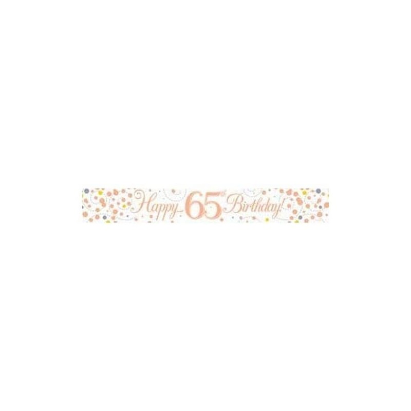 9ft Banner Sparkling Fizz 65th Birthday White & Rose Gold Holographic
