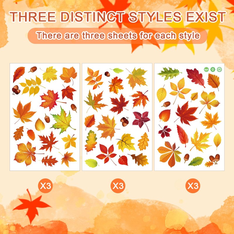 - Package Content: You will receive 9 sheets of our autumn window stickers. They come in three distinct styles, each with three sheets. There is enough variation and richness of design to satisfy your decorative requirements.
