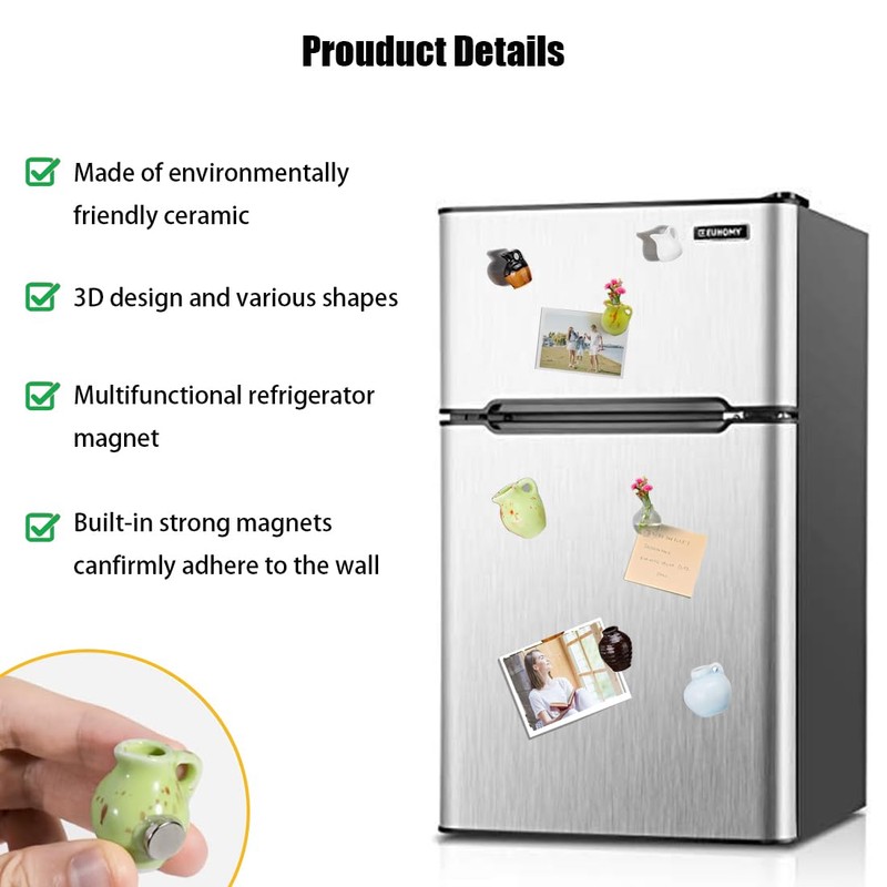 9PCS Mini Ceramic Vase Magnets for Fridge