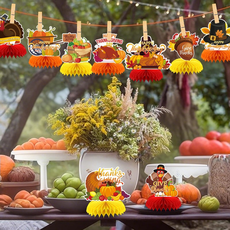 - Wide Application: These Thanksgiving honeycomb decorations are ideal for Thanksgiving parties, Happy Fall Y'all parties, Friendsgiving parties, harvest parties, fall festival parties, fall classroom parties, fall birthday parties, fall office parties, turkey theme parties, pumpkin theme parties, autumn parties, and fall celebrations. These thanksgiving table decor are also perfect for friend gatherings, harvest dinners, birthday parties, outdoor picnics, and more—instantly creating a warm and festive autumn atmosphere wherever they are placed.