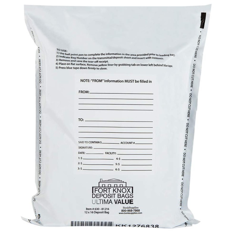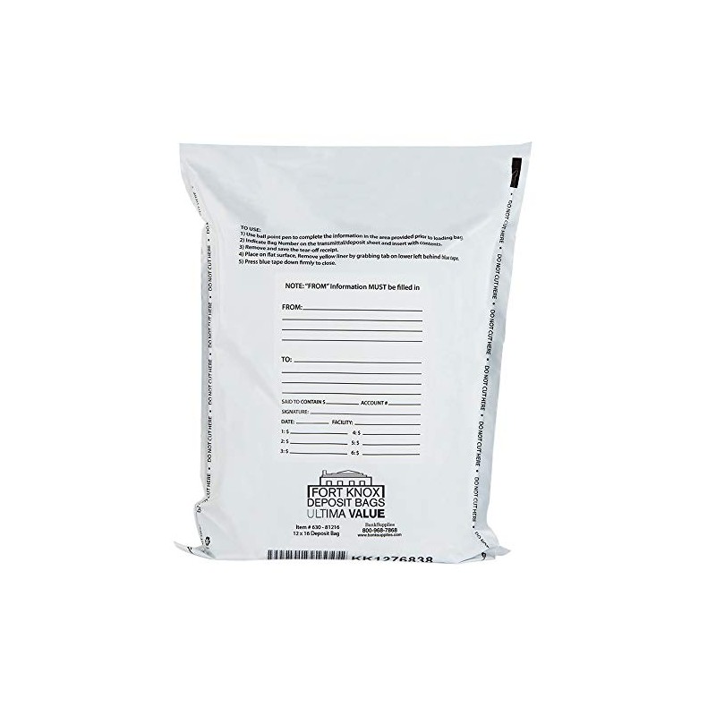 Perfect for secure, high-volume environments. Best mechanical seal in the industry; alerts you to unauthorized entry. Easy write on form and tear-away receipt with matching serial numbers for easy audit. Easy-scan barcode. 12W x 16H White Value Deposit Bags - Case of 100