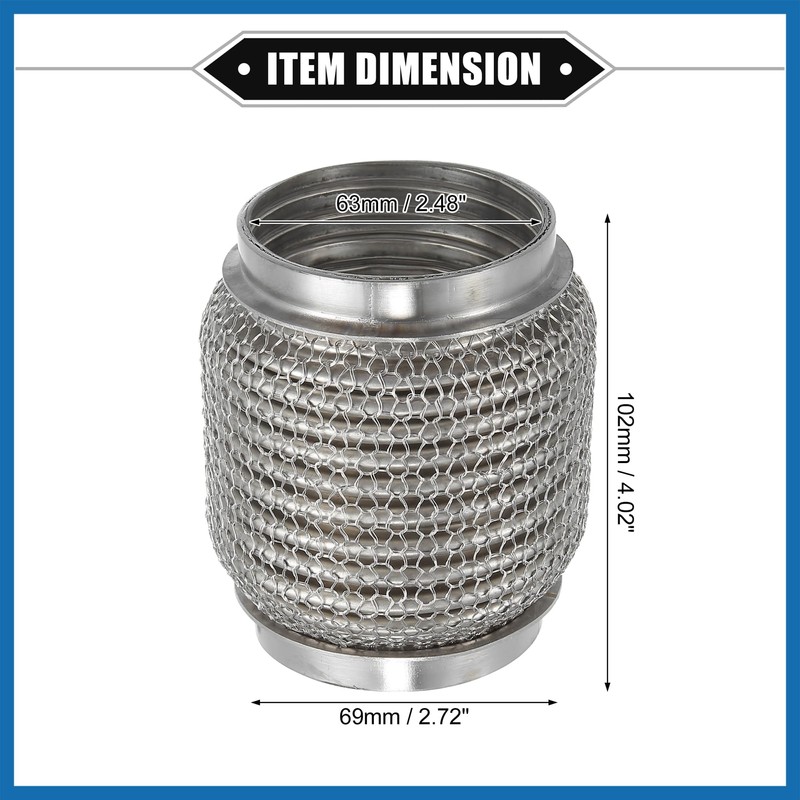 A ABSOPRO Car Exhaust Flexible Pipe, 63x102mm 2.48"x4.02" Exhaust Flex Connector Pipes Bellows Universal for Car Durable Stainless Steel Silver Tone Item Replacement