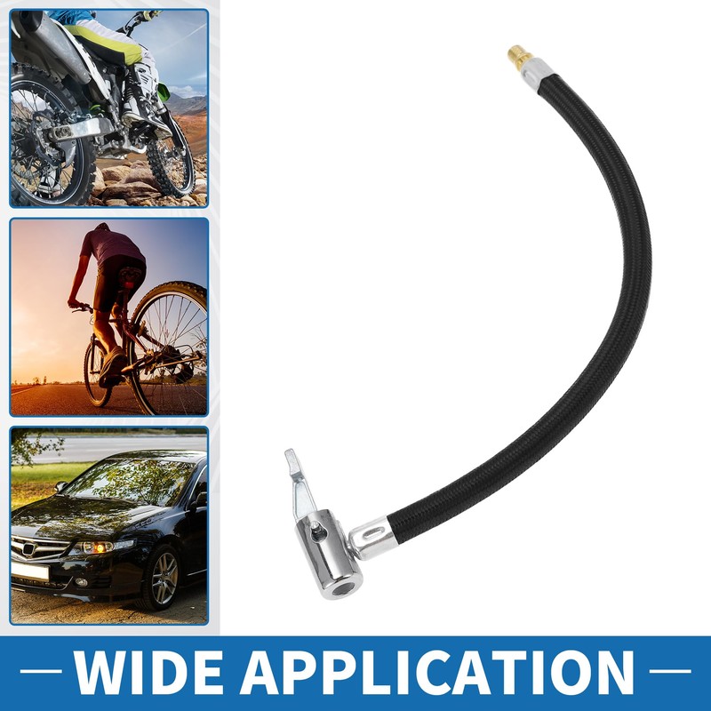 - Product Information:The lengthened tube covers more distance and provides more flexible space. A great addition to reach to hard-to-access valves and has a wide range of applications to be used to inflate car/motorcycle/bicycle.