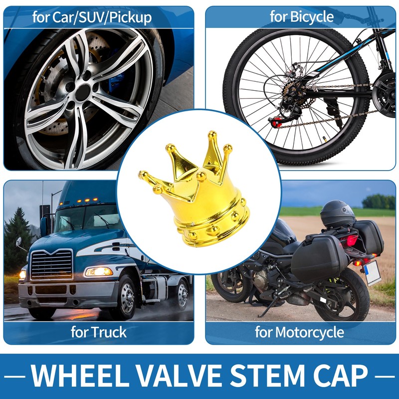 - Package List - 4 Pcs Car Tire Valve Stem Caps, Gold Tone, Crown Style.
