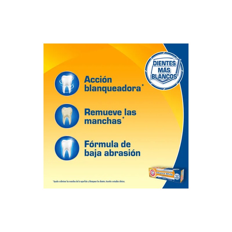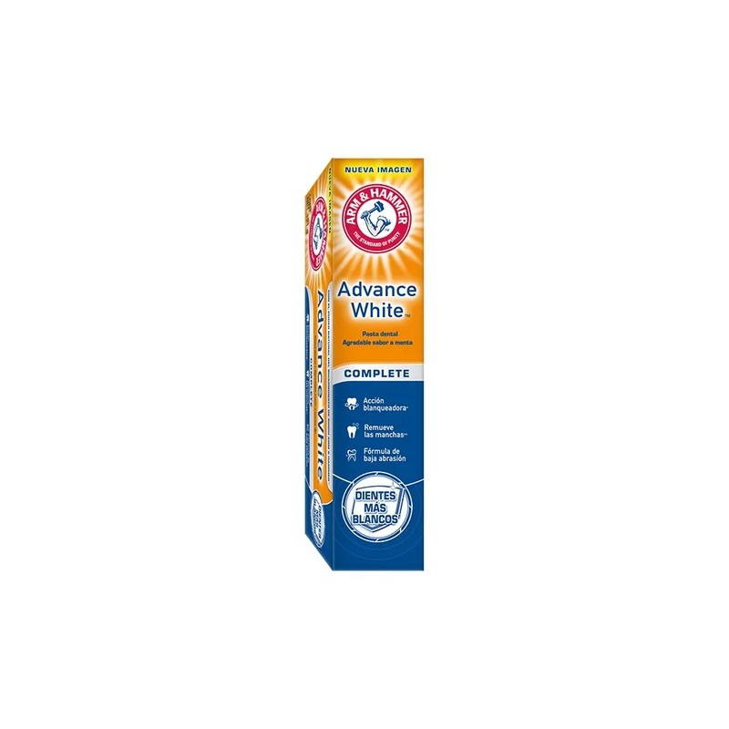 A-Arm & Hammer Pasta Dental Advance White Complete 121 g. Acción Blanqueadora que Remueve las Manchas, con Bicarbonato de Sodio y Peróxido. Aliento Fresco Duradero, Sabor Menta