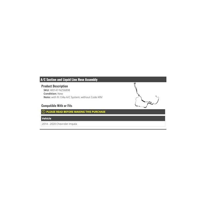A/C Suction and Liquid Line Hose Assembly - Compatible with 2014 - 2020 Chevy Impala