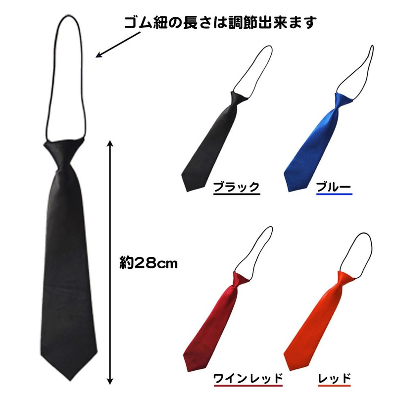 A-CRAFT One-Touch Necktie, Black, Easy for Kids, Kindergarten, Elementary School, red