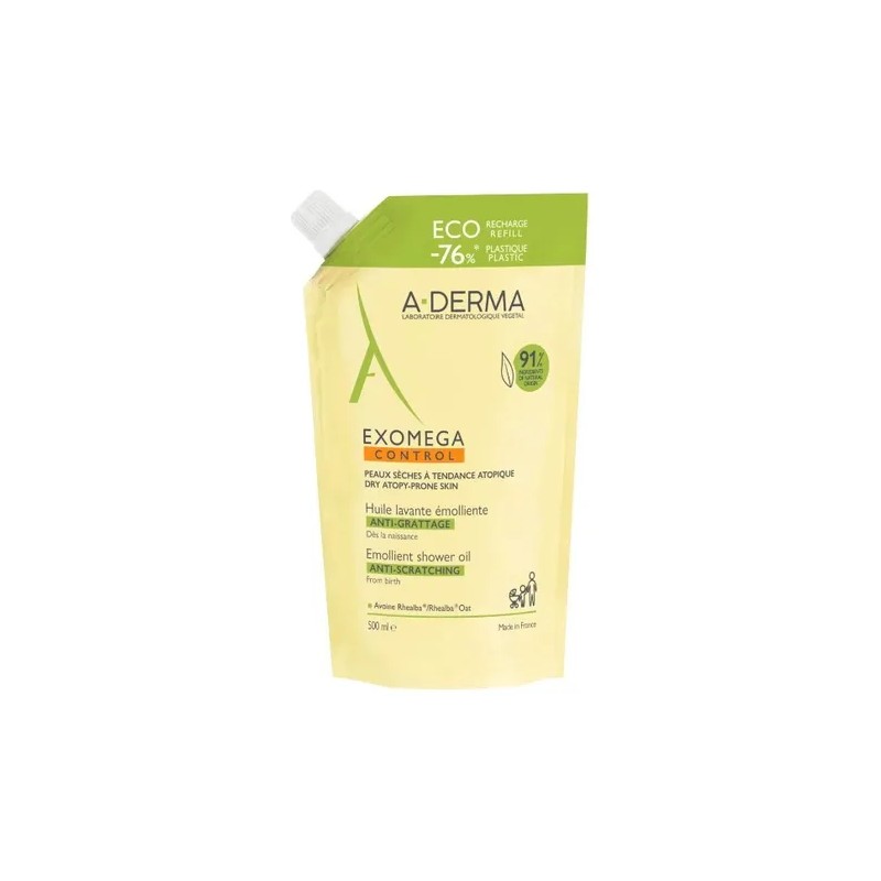 El eco-Refill de Exomega Control para ducha, está pensado y diseñado para piel seca y con tendencia atópica, que suelen irritarse fácilmente por los factores resecantes, este producto limpia y calma inmediatamente después de su aplicación en el baño.