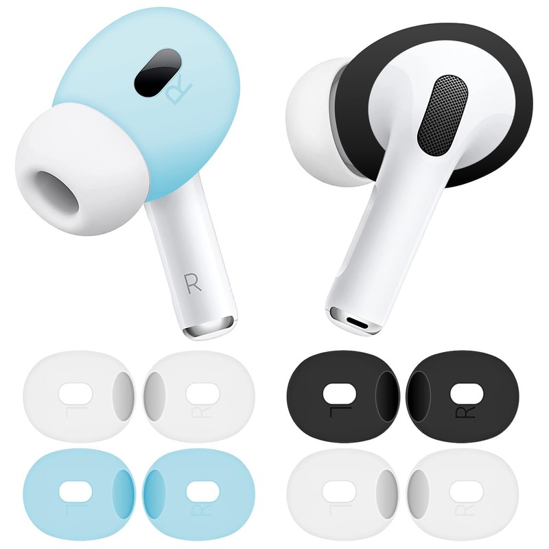 A-Focus Fit in Case for AirPods Pro 2nd Ultra Thin Ear Tips Replacement Silicone Dust Proof Anti-Scratch Eartips Earbuds Cover Accessories Compatible with AirPods Pro 2 Black White Blue 4 Pairs