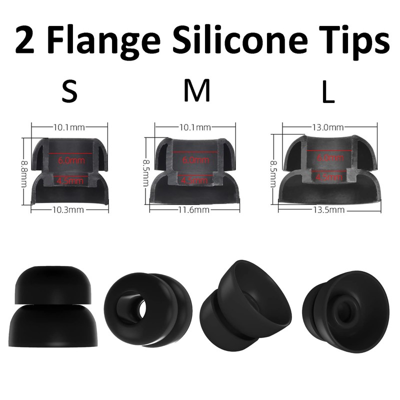 - [ Double Flange Ear Tips ] Made of silicone material, Double flange design offer a good seal to reduce some of the outside noise and allow you to focus on your audio, provide a better sound listening experience.