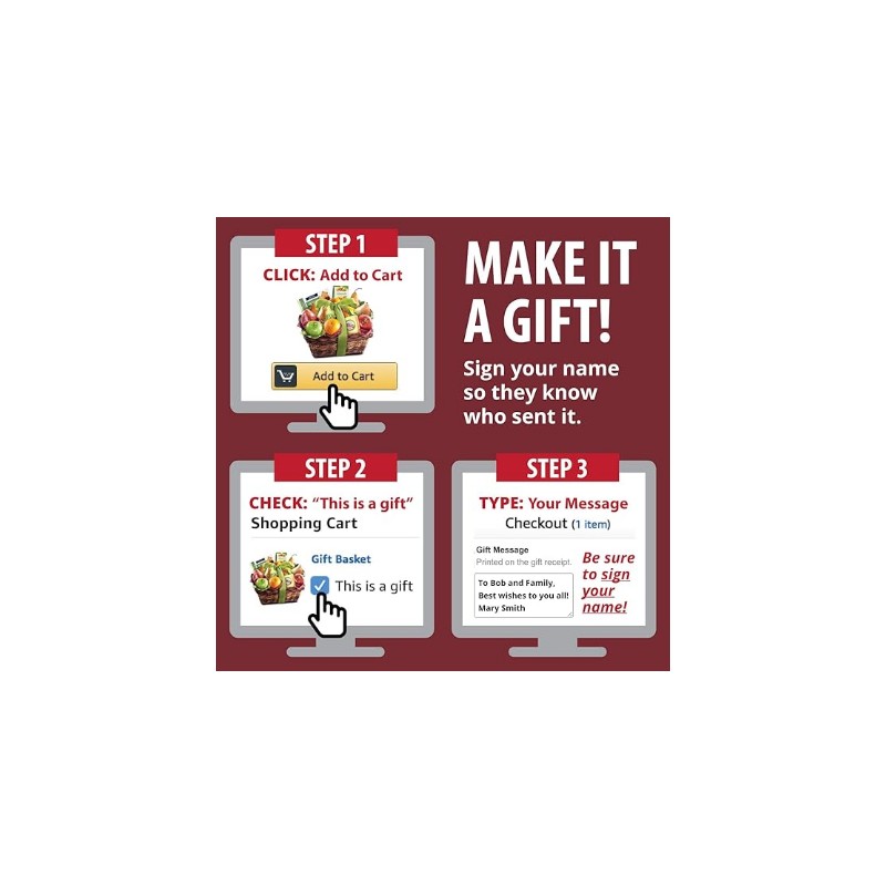 - Sending as a gift. See alternate image for Instruction on how to include A GIFT MESSAGE. Be sure to sign your name and/or your company, so your recipient KNOWS who to thank