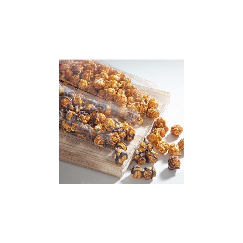 - Give the gift of best-selling deliciousness or treat yourself to two of our prized house-made gooey caramel corns: butter and dark-chocolate drizzled, Ghirardelli dark chocolate and caramel-filled squares with along with 2 flavors of crunchy confection mini pretzels, our house-made milk chocolate almond bark, fresh chocolate covered cashews and crunchy melt-in-your mouth peanut brittle packed into high quality, keepsake seagrass basket for the ultiimate in chocolatey, nutty and crunchy snack gifting.