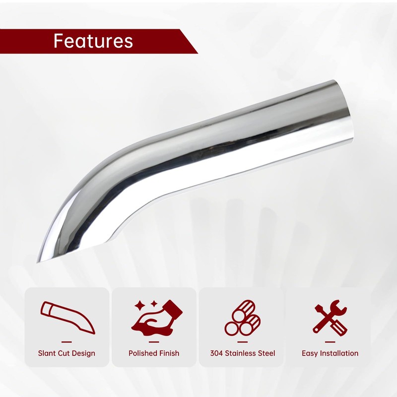 A-KARCK 5 Inch OD Polished Stainless Steel Miter Angle Cut Diesel Smoker Unslotted
