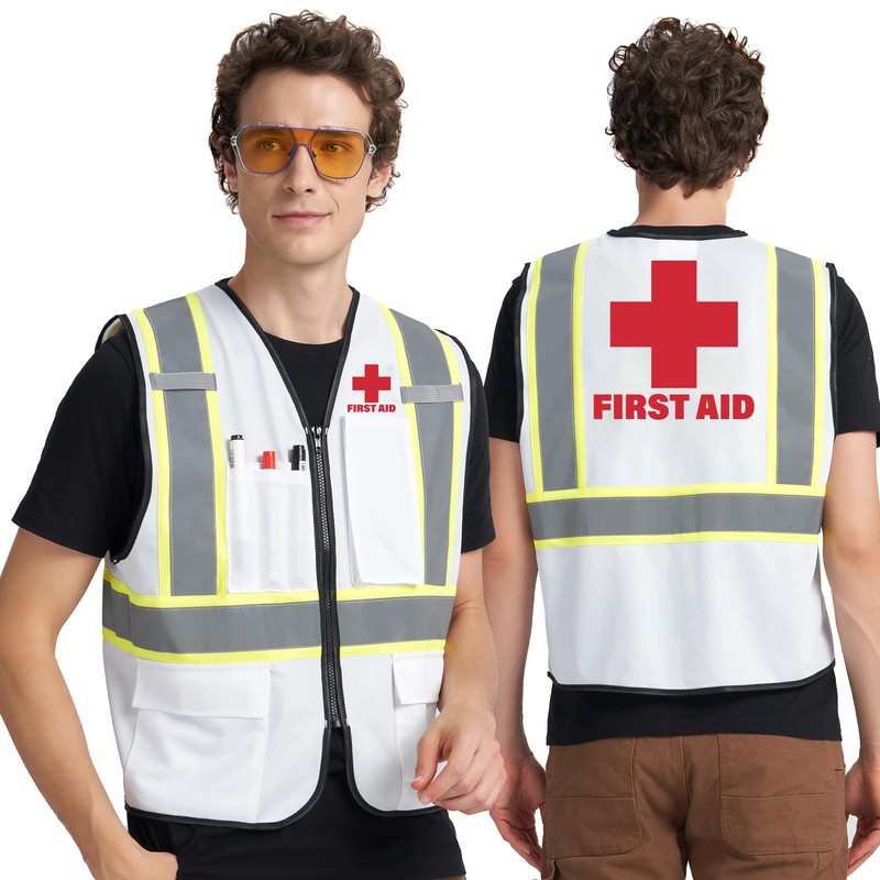 A-KSAFETY FIRST White Security Vest - High Visibility Reflective Safety & Wor...
