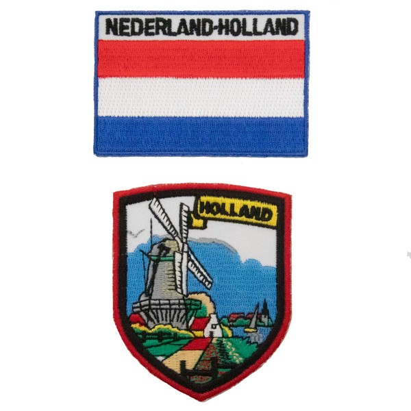 A-ONE 2 PCS Pack- The Netherlands Windmill Embroidery Patch + The Netherlands Flag Patch, Applique Shield Patch