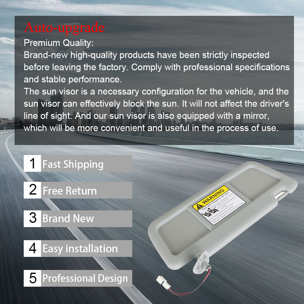 The sun visor is a necessary configuration for the vehicle, and the sun visor can effectively block the sun. It will not affect the driver's line of sight. And our sun visor is also equipped with a mirror, which will be more convenient and useful in the process of use.