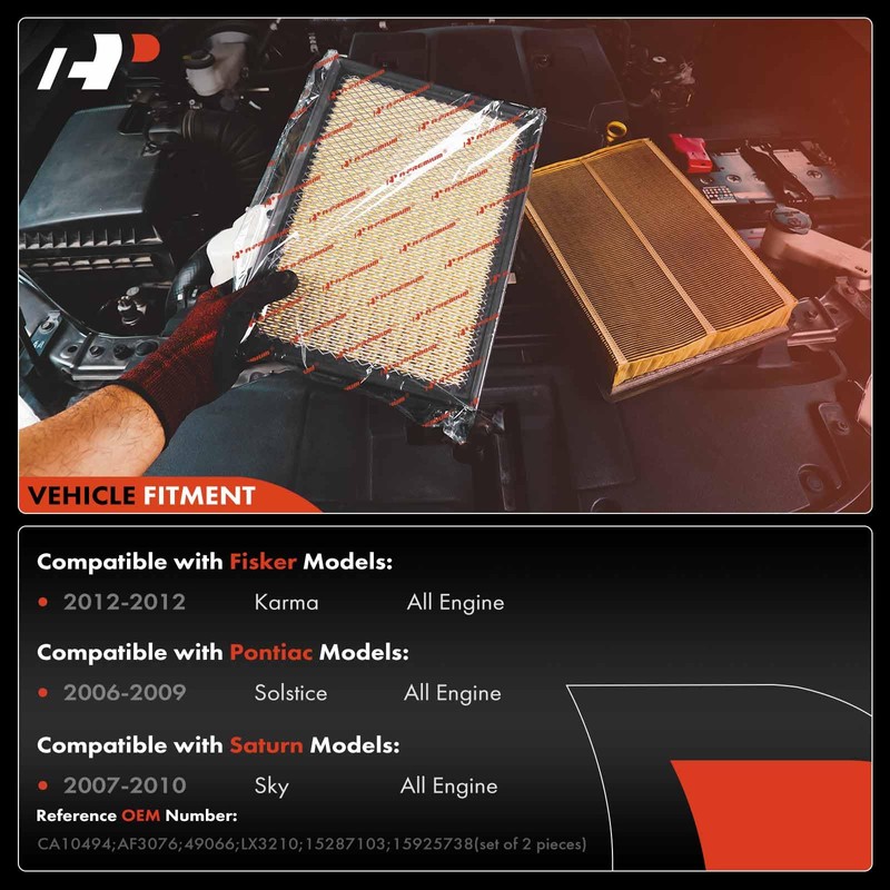 A-Premium 2-PC Engine Air Filter Compatible with Fisker Karma 2012 & Pontiac Solstice 2006-2009 & Saturn Sky 2007-2010, Replace# 15287103, 15925738