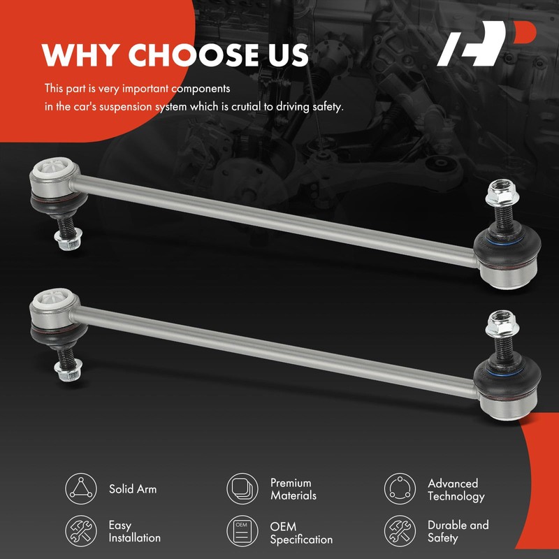 A-premium Sway Bar Link Kits are an ideal choice to replace your broken Sway Bar Link Kits. All Sway Bar Link Kits meet or exceed OEM specifications. Due to high manufacturing standard, it will come with one year quality guarantee.
