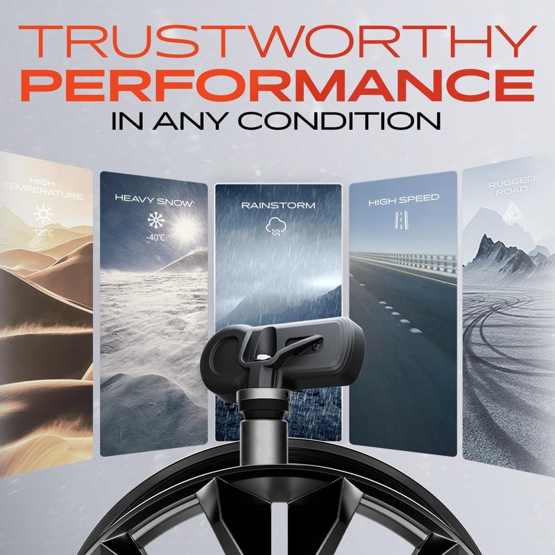 - [Precision Monitoring]: Real-time and accurate monitoring of tire pressure, equipped with a high-precision chip to ensure timely and accurate data transmission; Combined with long-lasting CR2050 battery, it provides an ultra-long life span, adapts to extreme environments from -40℃ to 120℃, and delivers stable and reliable performance. It ensures you can always stay informed about your tire conditions during every drive, enhancing driving safety.