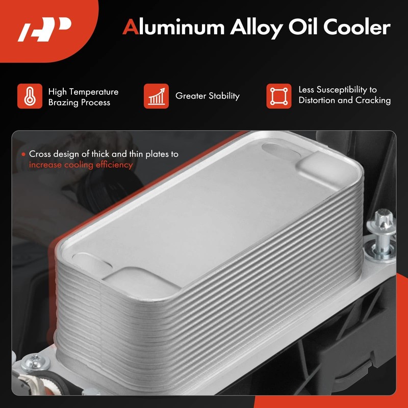 - [3003 Type Aluminum Multi-layer Oil Cooler]: The engine oil cooler of the oil filter housing is a multi-layered 3003 type aluminum structure. The oil cooler has slender cross and parallel cooling channels inside, which allows the coolant to effectively take away the heat of the oil, making the engine run better. Of course, we also thoughtfully added a new oil filter inside, which not only filters impurities in the oil, but also saves you an additional expense
