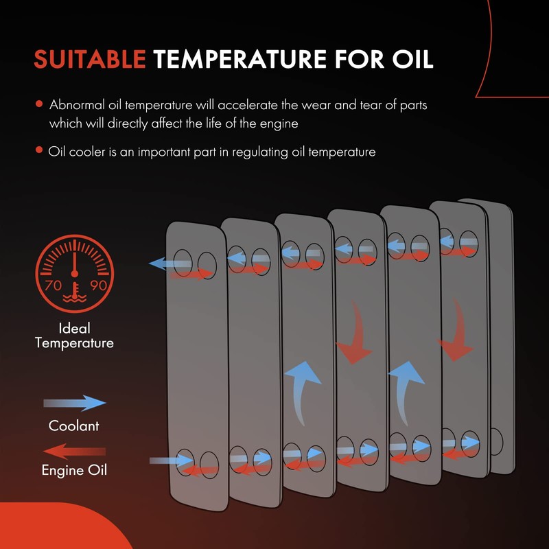 - [Function]: Oil cooler can cool the oil in time to ensure the engine parts will not be worn due to the high temperature or poor lubrication effect