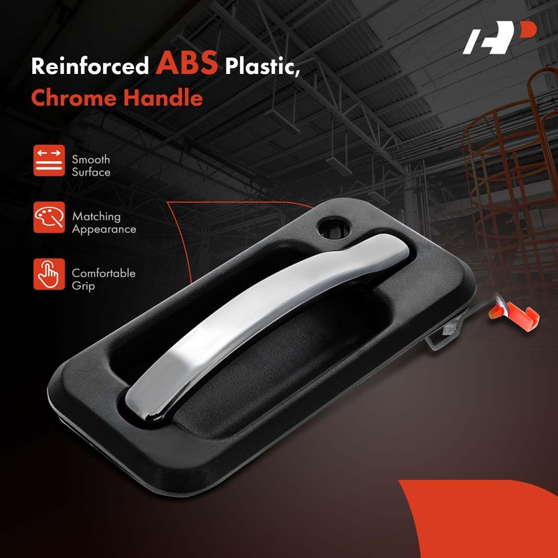 - [Specifications]: ① Package Included: 1x Front Right Passenger Side Exterior Door Handle; ② Color / Finish: Chrome Lever and Black Bezel; ③ Material: Plastic; ④ Key Lock Hole: Yes; ⑤ Condition: New; ⑥ Paintable: Yes