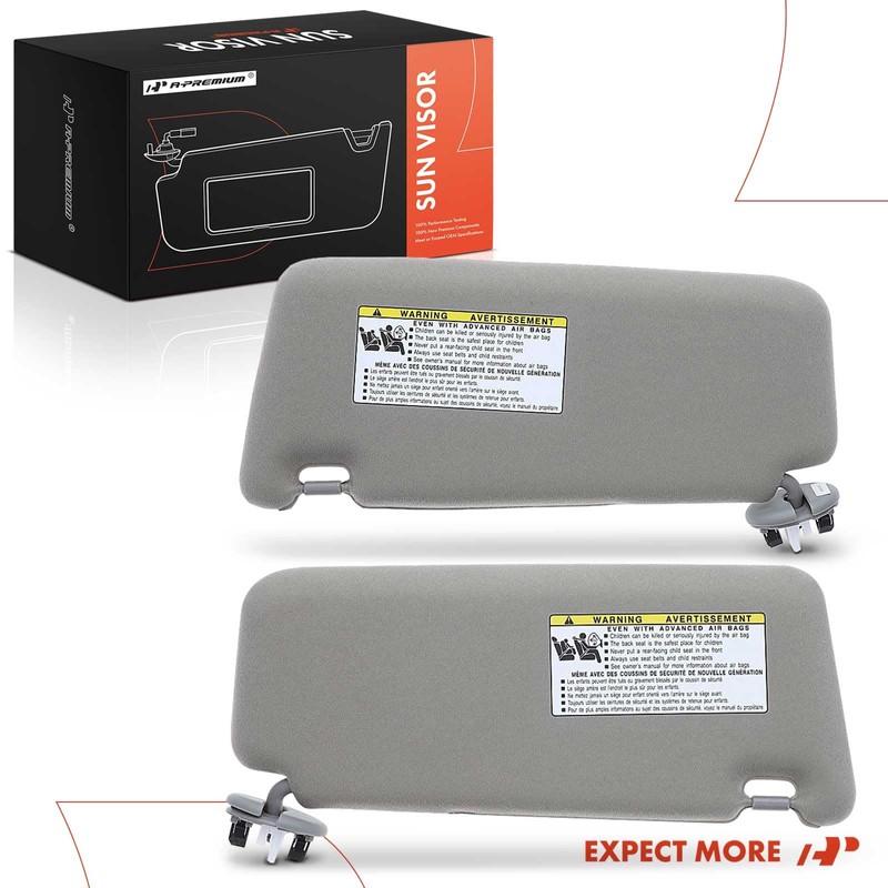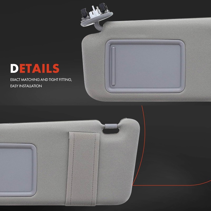 A-Premium Left & Right Sun Visor Compatible with Toyota Camry 2007 2008 2009 2010 2011, with Mirror and Light, Gray