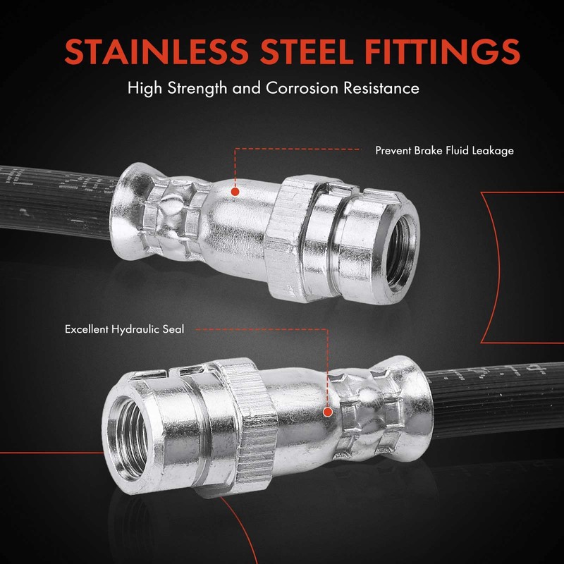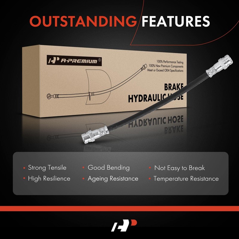 - [Superior Quality]: A-Premium Brake Hydraulic Oil Hose consists of EPDM rubber and stainless steel fittings, meeting DOT certification standards, Federal Motor Vehicle Safety Standards(FMVSS 106) and SAE J1401 Standards. Premium craftsmanship and materials ensure superior quality and durability, and excellent performance enhances the whole braking system.