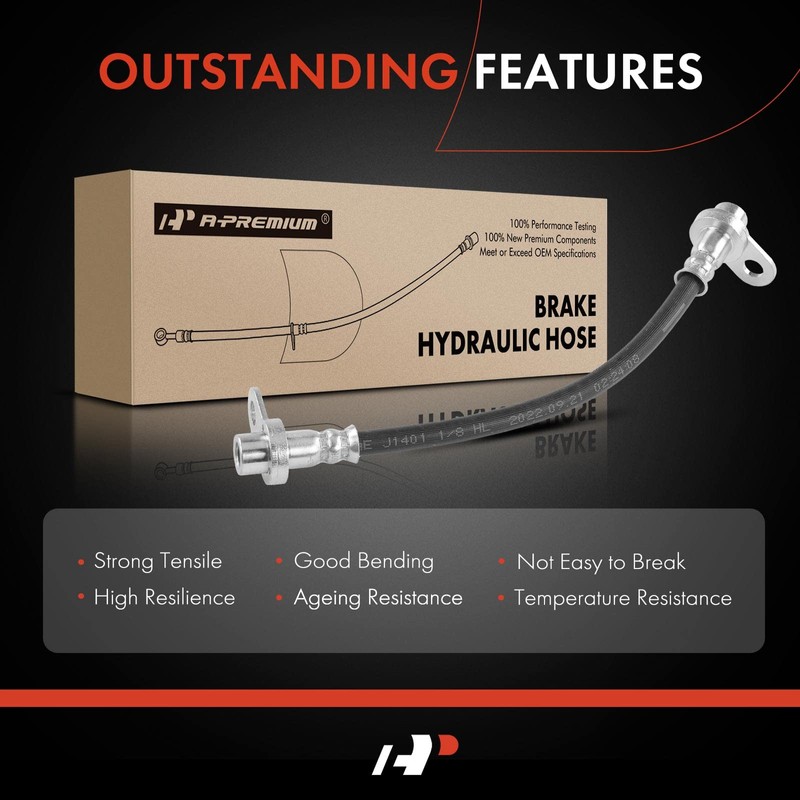 - [Superior Quality]: A-Premium Brake Hydraulic Oil Hose consists of EPDM rubber and stainless steel fittings, meeting DOT certification standards, Federal Motor Vehicle Safety Standards(FMVSS 106) and SAE J1401 Standards. Premium craftsmanship and materials ensure superior quality and durability, and excellent performance enhances the whole braking system.