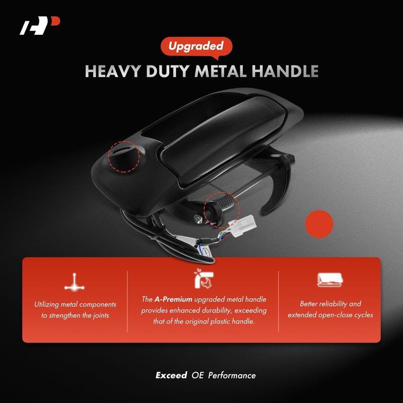 - [Direct Replacement]: The A-Premium upgraded metal door handle is made to exceed OE standards, while perfectly matching original factory specifications. It is designed for direct replacement, providing great convenience and flexibility. Both DIY enthusiasts and professional mechanics can easily install it, ensuring efficient and easy operation.